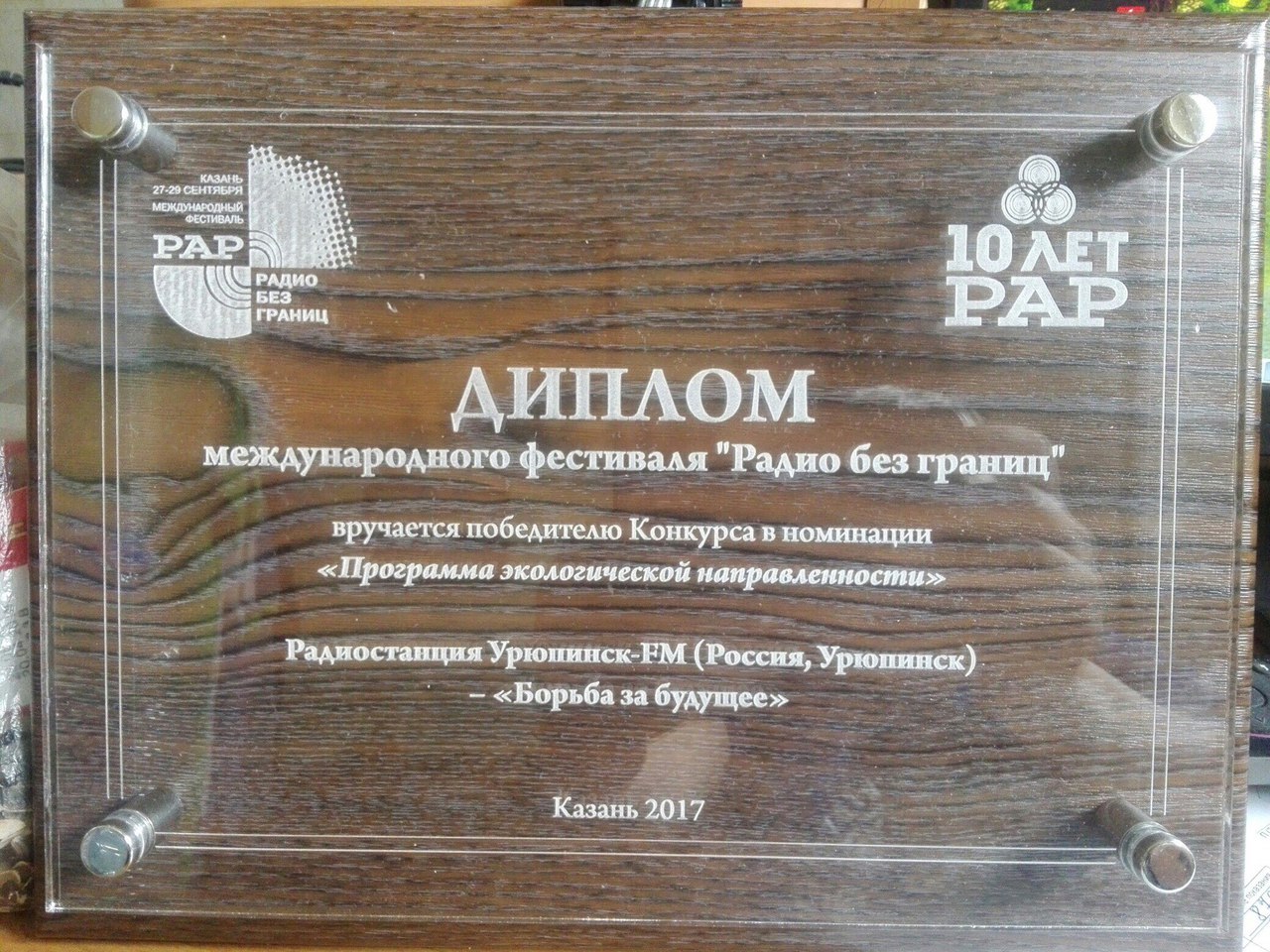 Урюпинское радио получило 1 место на II международном фестивале Российской Академии Радио «Радио без границ», которое состоялось в Казани 27-29 сентября.
